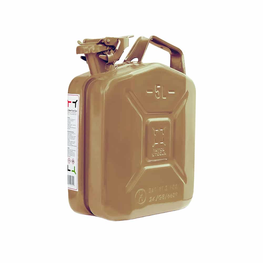 | Colour choice and range alternative | Standard colours are red, khaki green and black but also available in any RAL colour. Also available in khaki camouflage and sand camouflage. We also have a stainless steel can and spout. |